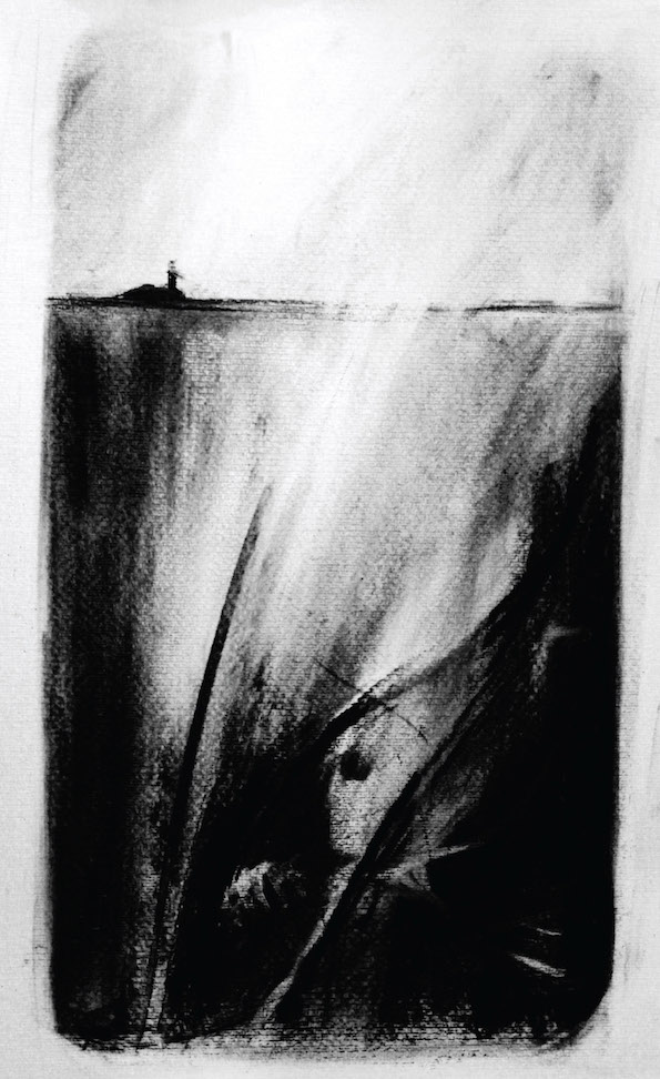 Fusaggine e inchiostro di china su carta, cm 30 x 50.