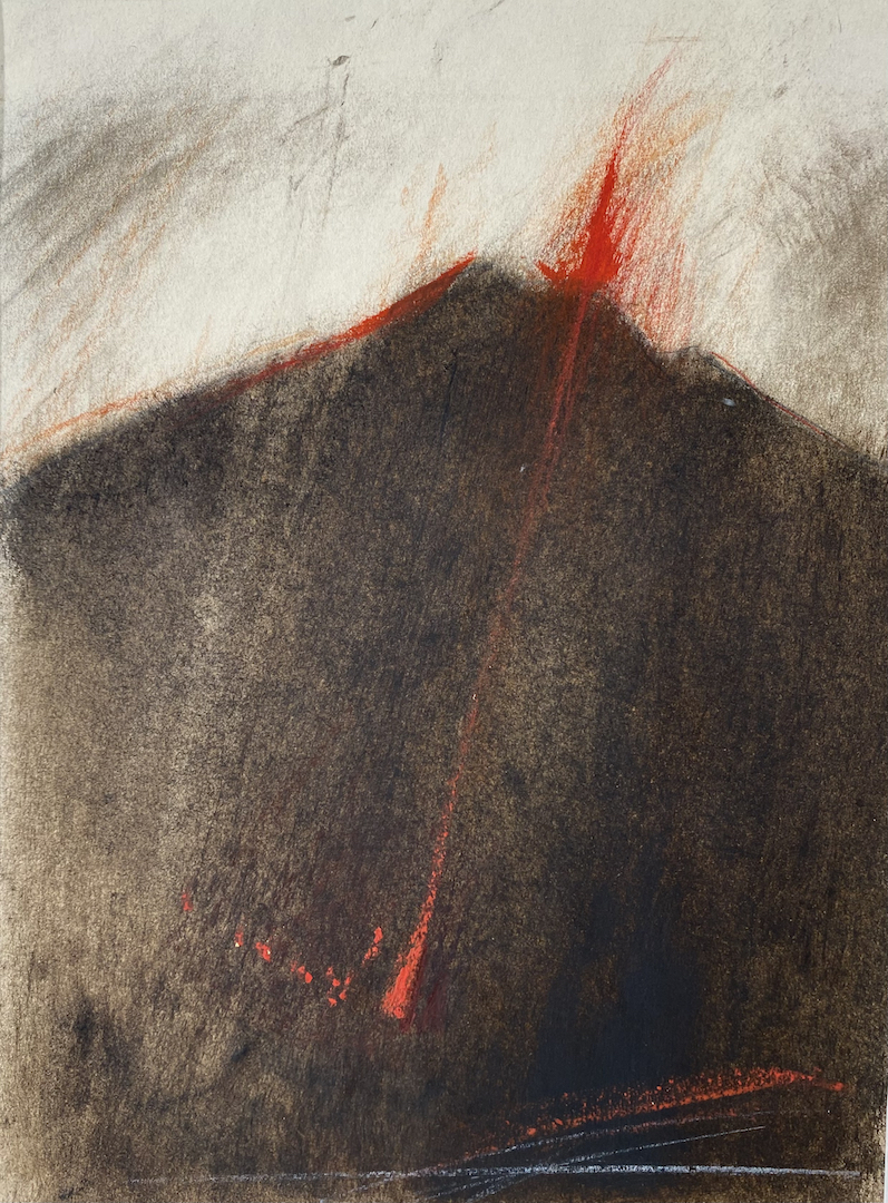 Olio, fusaggine, matita clorata e pastello su carta, 20 x 27 cm