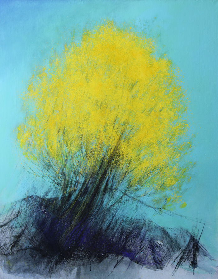 Profumo, 2020 Olio, tempere, acrilici, pastelli, fusaggine, sabbia vulcanica e collage su tela di tuta, cm 110 x 140 cm.