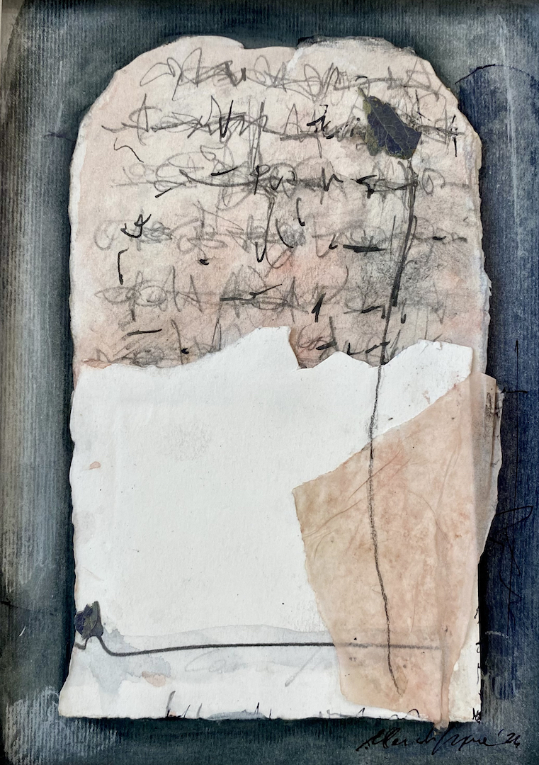 Inchiostro, penna, collage, matite, colori ad acqua su carta, 13×18 cm